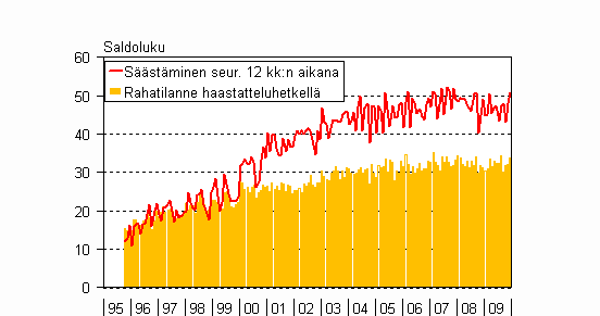 A2 Kuluttajien arviot kotitaloutensa säästämismahdollisuuksista seuraavan 12 kk aikana ja rahatilanteesta haastatteluhetkellä 10/1995-12/2009