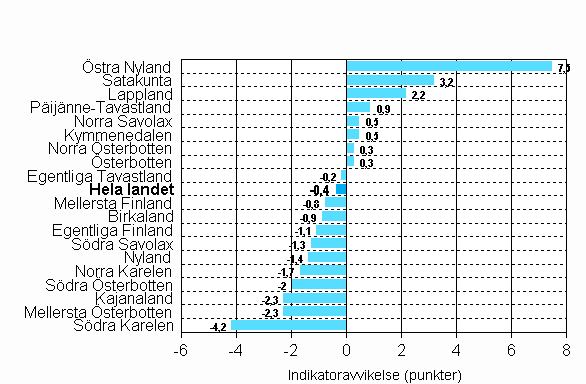 | Södra Karelen | -1,5 | 46,4 | 18,6 | -32,1 | 7,8 | 9,3 | 12,0 |