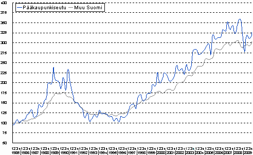 Lähde: Kiinteistöjen hintaindeksi, 4. neljännes 2009. Tilastokeskus