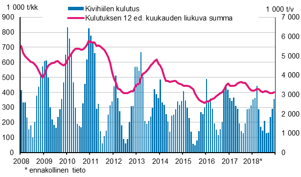 Tilastokeskuksen ennakkotiedon mukaan kivihiilen kulutus väheni viime vuonna 3 prosenttia edellisvuoteen verrattuna. Kivihiiltä käytettiin sähkön- ja lämmöntuotannon polttoaineena 3,1 miljoonaa tonnia, joka vastaa energiasisällöltään 79 petajoulea (PJ). Verrattuna 2000-luvun keskiarvoon kivihiilen kulutus oli 31 prosenttia matalammalla tasolla.