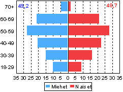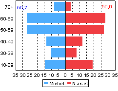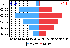 Enemmistö miehiä ja suurten ikäluokkien edustajia