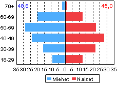 | Äänioikeutetut | 14,8 | 11,5 | 39,2 | 34,4 |