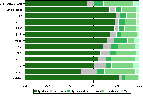 | Ehdokkaat yht | 100,0 | 100,0 | 100,0 | 100,0 | 100,0 | 100,0 | 100,0 | 100,0 |