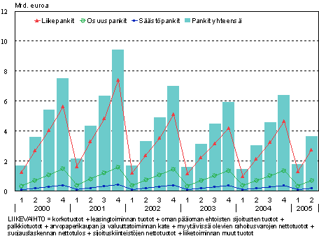 Kotimaisten pankkien liikevaihto neljännesvuosittain vuosina 2000-2005