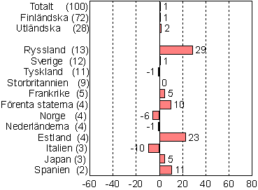 Källa: Statistikcentralens turiststatistik. Statistikcentralen