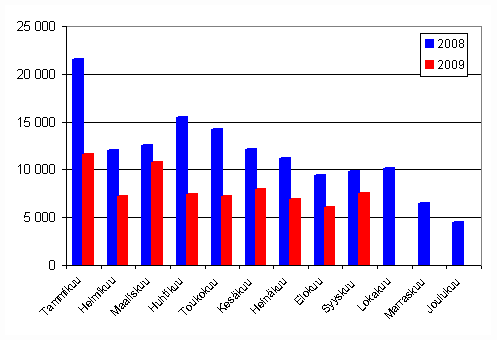 Lähde: Ensirekisteröintitilastot 2009. Tilastokeskus, AKE