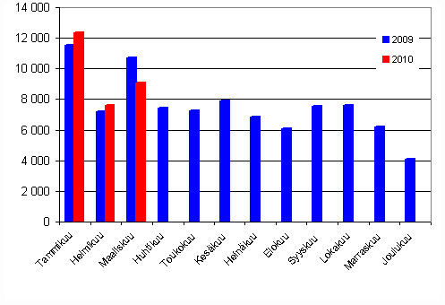 Lähde: Ensirekisteröintitilastot 2010. Tilastokeskus, TraFi