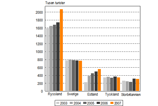 De viktigaste ursprungsländerna för turister i Finland under åren 2003-2007