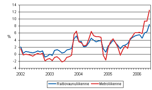 Raitiovaunu- ja metroliikenteen kustannusten vuosimuutokset 1/2002 - 6/2006