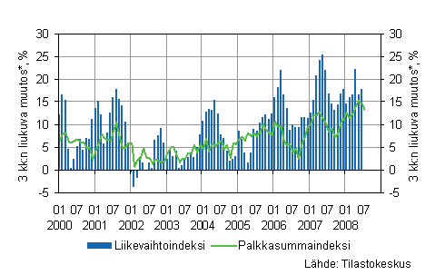 Talonrakennusyritysten touko-heinäkuussa 2008 maksama palkkasumma oli 13,2 prosenttia vuoden takaista vastaavaa ajanjaksoa suurempi. Heinäkuun palkkasumma oli 18,0 prosenttia edellisvuoden heinäkuun palkkasummaa suurempi.