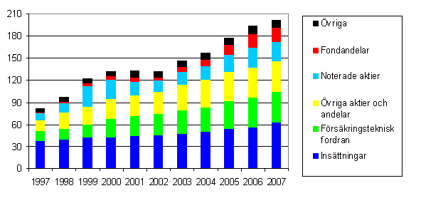 Hushållens finansiella tillgångar 1997-2007, miljarder euro