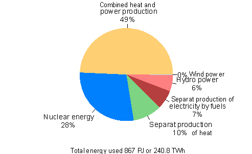 Figure 4. Total energy used by production mode in production of electricity and heat 2005
