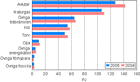 Figur 6. Förbrukningen av bränslen inom samproduktion av el och värme 2004 och 2005