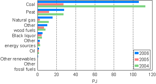 Figure 14. Use of fuels in separate production of electricity 2004-2006