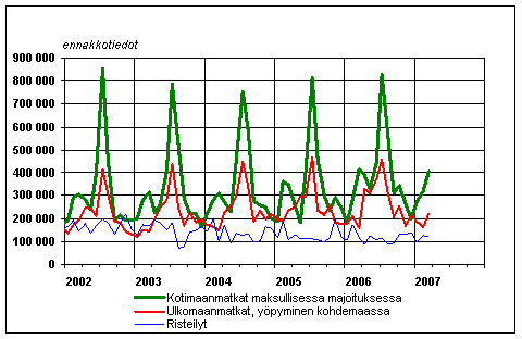 Suomalaisten vapaa-ajanmatkat kuukausittain 2002-2007, ennakkotiedot