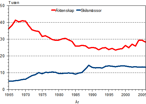 - Äktenskap och skilsmässor 1965-2006 (Excel) (4.5.2007)