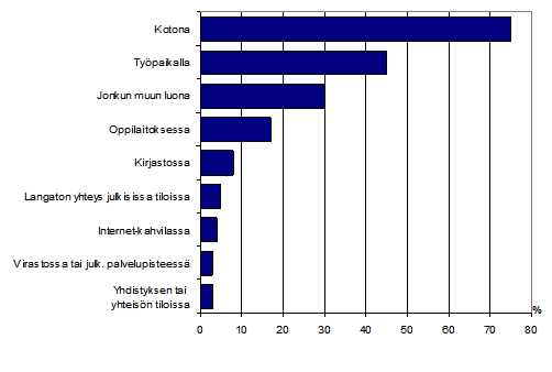 Internetin käyttöpaikat keväällä 2008, prosenttia