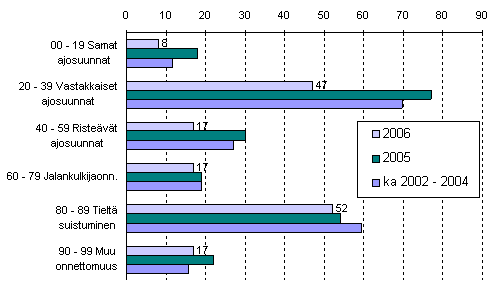Tieliikenteessä kuolleet onnettomuustyypin mukaan tammi-heinäkuussa 2006