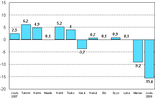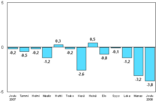 - Teollisuustuotannon työpäiväkorjattu muutosprosentti joulukuu 2007 / joulukuu 2008 (30.1.2008)