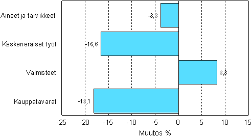 Teollisuuden varastojen muutos, varastotyypeittäin, 2005/III - 2005/IV, %