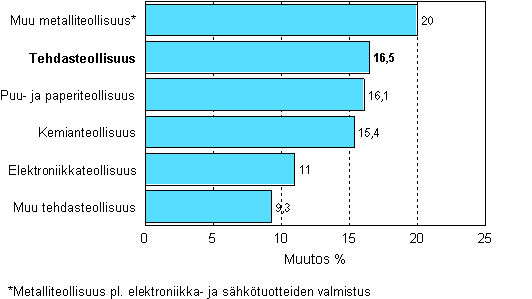 Teollisuuden varastojen muutos, 2006/IV - 2007/IV, %