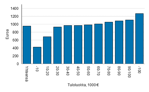 | Usea tai tuntematon, keskimäärin, € | 970 | 861 | 1 067 | 1 099 | 1 051 | 1 020 | 899 | 909 |