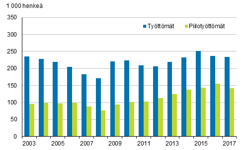 Työttömät ja piilotyöttömät vuosina 2003–2017, 15–74-vuotiaat
