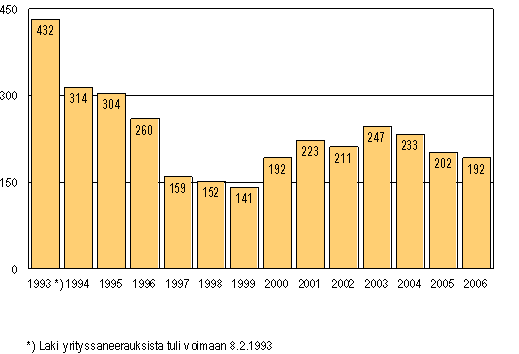 Lähde: Yrityssaneeraukset 2006, 3. vuosineljännes. Tilastokeskus