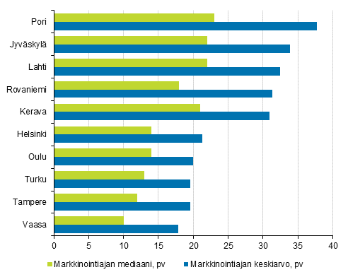Maakunnittain tarkasteltuna markkinointiajat olivat pisimmät Etelä-Karjalassa ja Satakunnassa ja lyhyimmät Uudellamaalla.