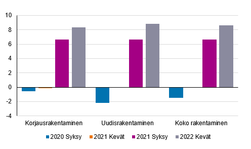 Rakennusyrityksiä on pyydetty arvioimaan korjausrakentamiseen sekä uudisrakentamiseen hankittujen aliurakoiden hintakehitystä. Nyt keväällä 2022 hinnat kasvoivat uudisrakentamisessa 8,8 prosenttia ja korjausrakentamisessa 8,3 prosenttia. Hintojen voimakas nousu on ollut näkyvissä syksystä 2021 alkaen.