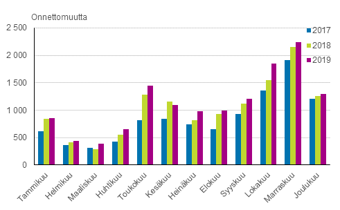Kuvio 1. Riistaonnettomuudet kuukausittain vuosina 2017-2019