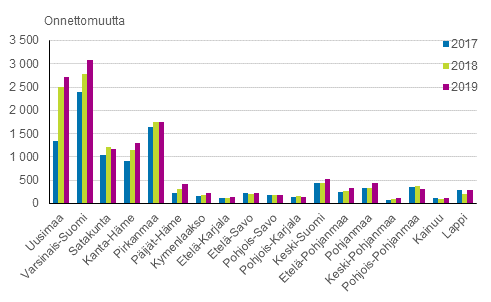 Alueellisesti tarkastellen suurin osa riistaonnettomuuksista vuonna 2019 tapahtui Varsinais-Suomessa, Uudellamaalla ja Pirkanmaalla. Näissä maakunnissa tapahtui yli puolet kaikista riistaonnettomuuksista. Myös Satakunnassa ja Kanta-Hämeessä tapahtui paljon onnettomuuksia, lähes 20 prosenttia koko maan vahingoista. Suurin kasvu onnettomuuksien määrässä oli Varsinais-Suomessa, Uudellamaalla ja Kanta-Hämeessä. Laskua puolestaan oli eniten Pohjois-Pohjanmaalla, Pohjois-Karjalassa ja Satakunnassa.