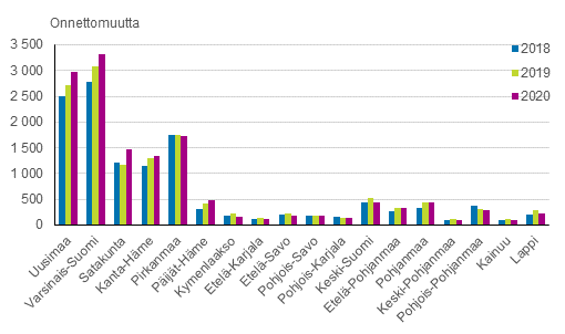 Kuvio 2. Riistaonnettomuudet maakunnittain vuosina 2018-2020