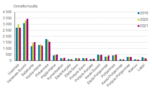 Kuvio 2. Riistaonnettomuudet maakunnittain vuosina 2019-2021